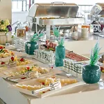 ארוחת בוקר בופה מוגשת כל בוקר במסעדה של Med-Inn Boutique Hotel. אורחים יכולים להרפות בבר בבריכה של המלון.